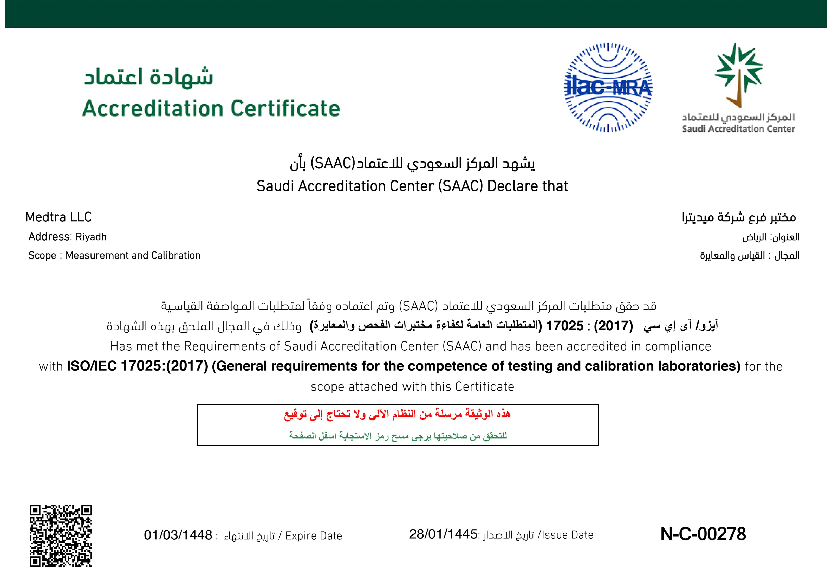 مختبر معايرة مجهز بأحدث التقنيات ويقع في الرياض بالمملكة العربية السعودية. تلعب شركة ميدترا دورًا رئيسيًا في التنمية المستمرة للبلاد من خلال تقديم خدمات المعايرة عالية الجودة لمختلف الصناعات.